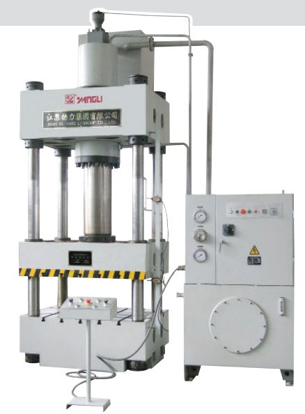 ■ 計算機優化結構設計,三梁四柱式結構,簡單、經濟、實用 ■ 液壓控制采用插裝閥集成系統,動作可靠,使用壽命長,液壓沖擊小,減少了連接管路與泄漏點 ■ 獨立的電氣控制系統,工作可靠,動作直觀,維修方便 ■ 采用按鈕集中控制,具有調整、手動和半自動三種操作方式 ■ 通過操作面板選擇,可實現定程、定壓二種成形工藝,并具有保壓延時等功能 ■ 滑塊的工作壓力、安載快速下行和慢速工進的行程范圍均可根據工藝需要進行調整
